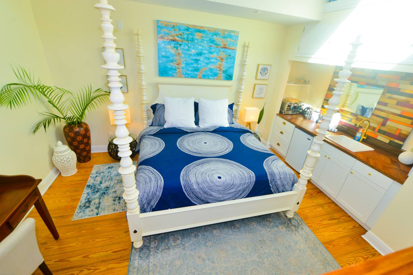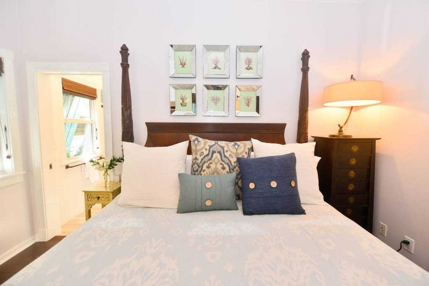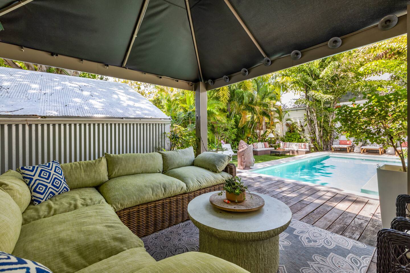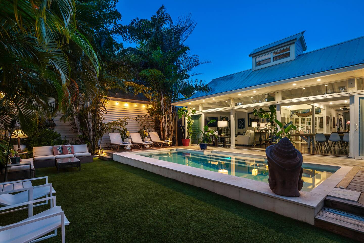 Blu on White is a culinary playground for passionate chefs and an ideal space for hosting family and friends. Relax on the pool deck with a refreshing drink or play bocce on the lush back lawn. This recently renovated traditional shotgun house with a twist encompasses four bedrooms and three bathrooms, including two master suites. The spacious post-and-beam addition leads to an outdoor area with a heated saltwater pool. Bask in the unique ambiance of the outdoor seating area or set off on our complimentary bikes to explore the world-class restaurants of Key West. Our prime location puts the beach just three blocks away and Cuban coffee shops mere steps from your doorstep, with Con Leche, Buccis, and Cheese bread waiting to be savored. Spread across a spacious 2,500 square feet, Blu on White ensures ample room for your entire family to enjoy their vacation.