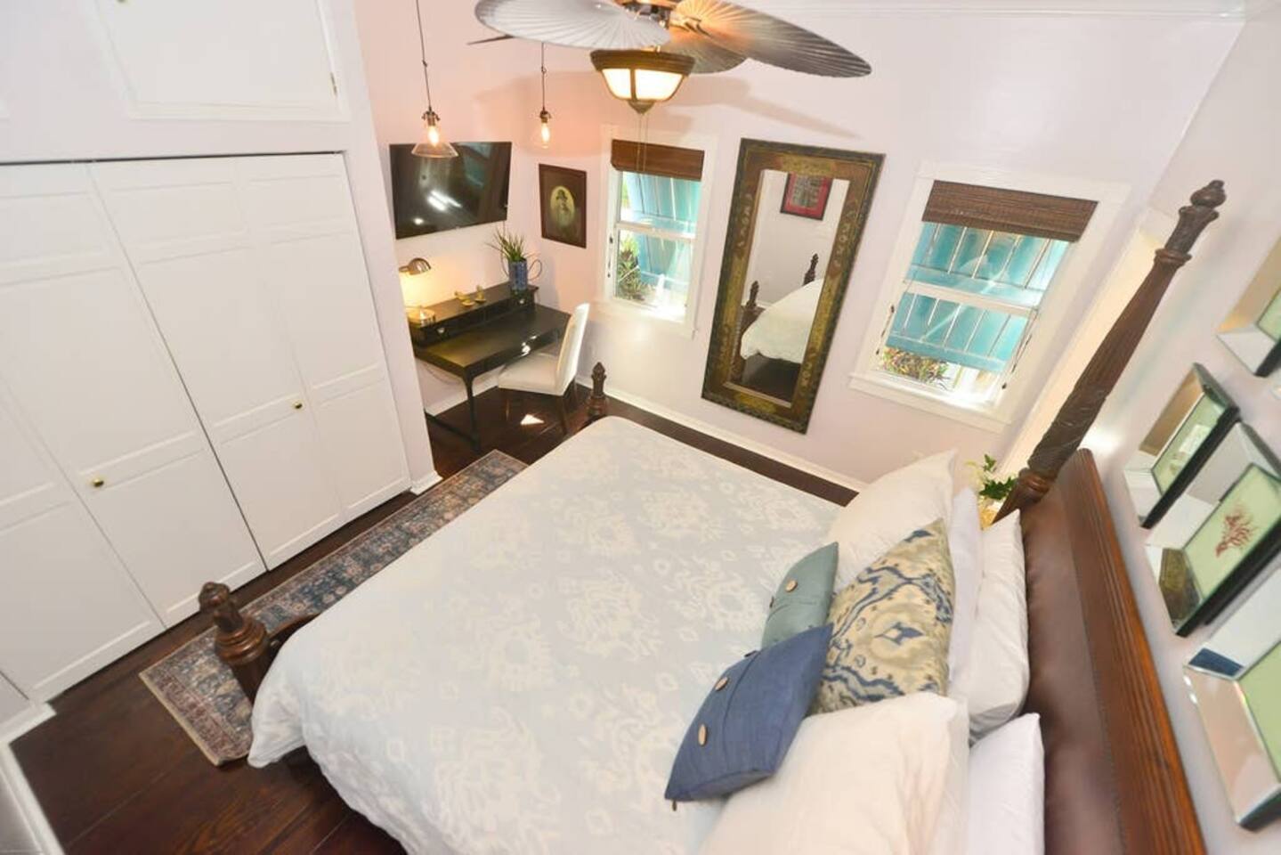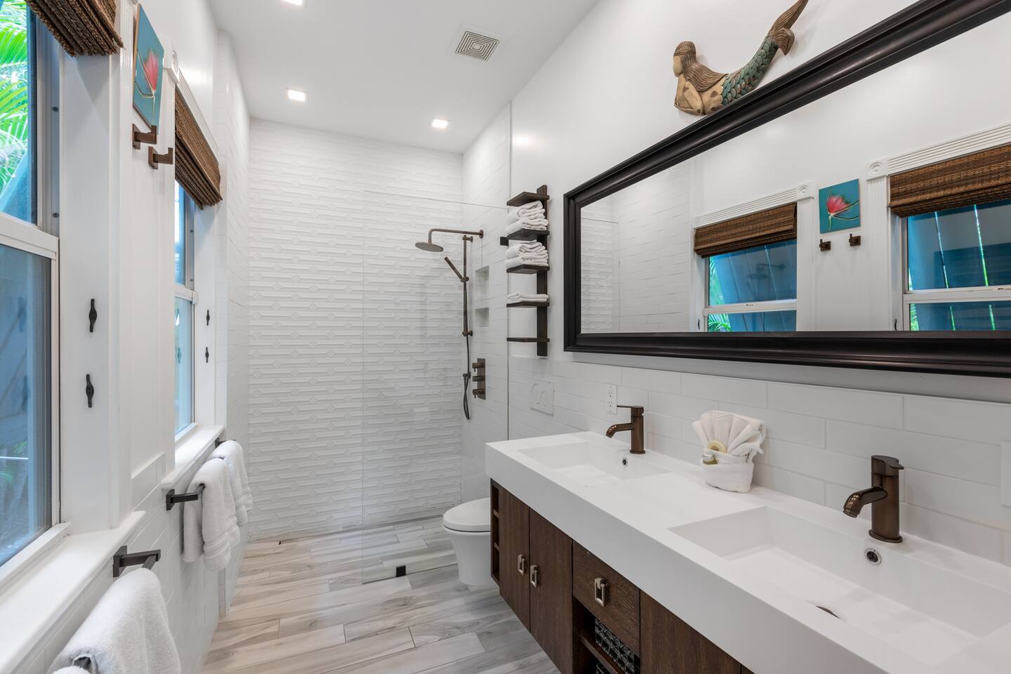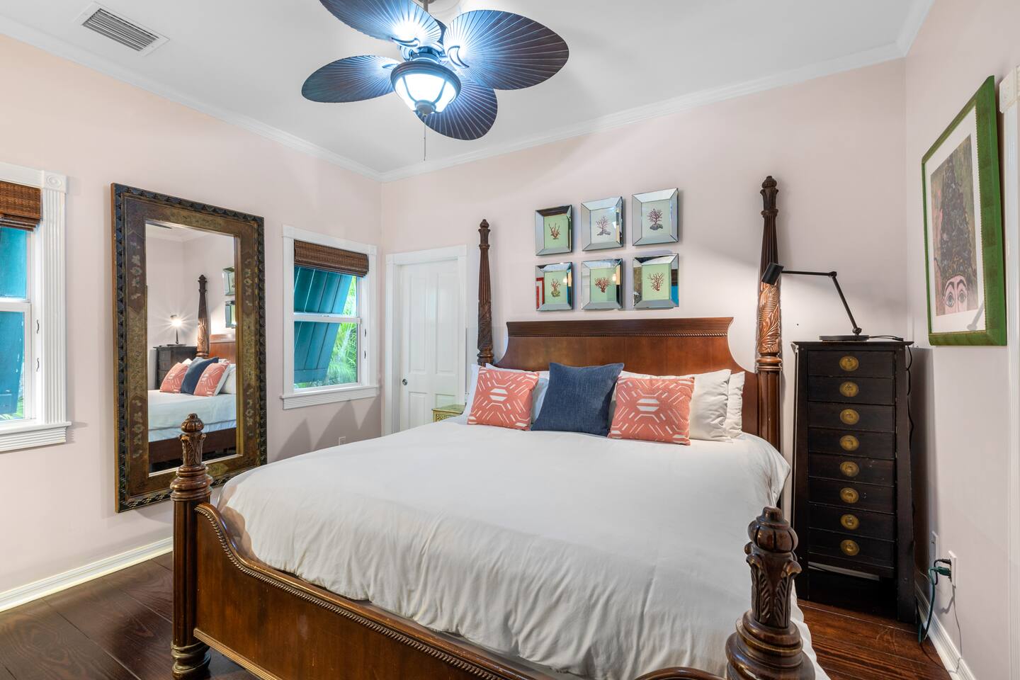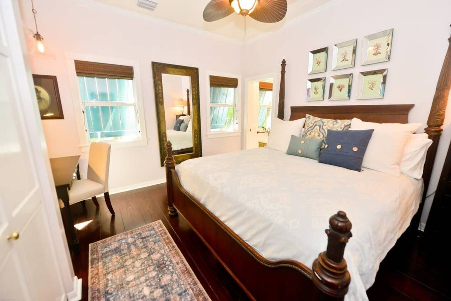 Blu on White is a culinary playground for passionate chefs and an ideal space for hosting family and friends. Relax on the pool deck with a refreshing drink or play bocce on the lush back lawn. This recently renovated traditional shotgun house with a twist encompasses four bedrooms and three bathrooms, including two master suites. The spacious post-and-beam addition leads to an outdoor area with a heated saltwater pool. Bask in the unique ambiance of the outdoor seating area or set off on our complimentary bikes to explore the world-class restaurants of Key West. Our prime location puts the beach just three blocks away and Cuban coffee shops mere steps from your doorstep, with Con Leche, Buccis, and Cheese bread waiting to be savored. Spread across a spacious 2,500 square feet, Blu on White ensures ample room for your entire family to enjoy their vacation.