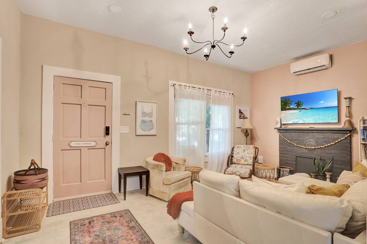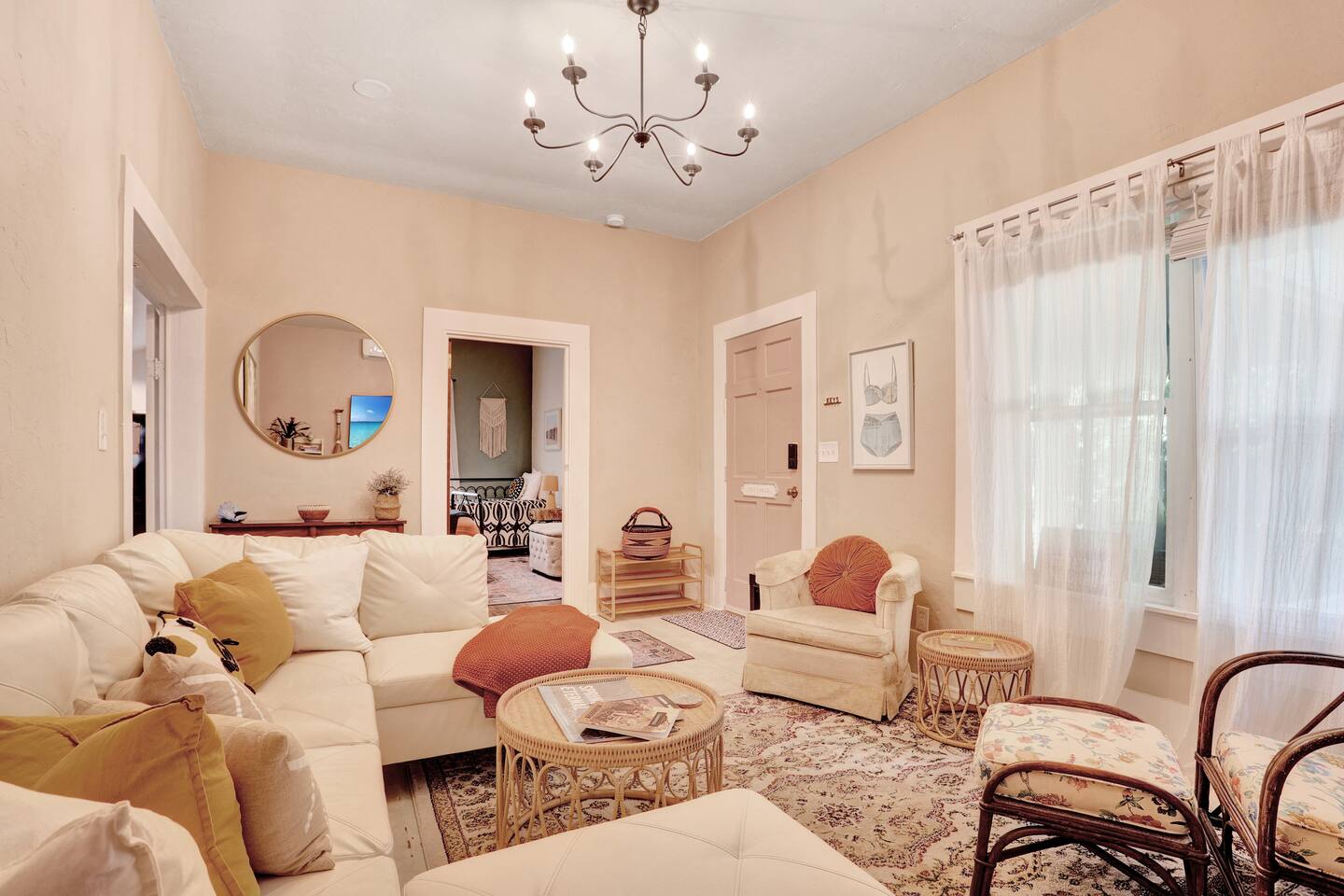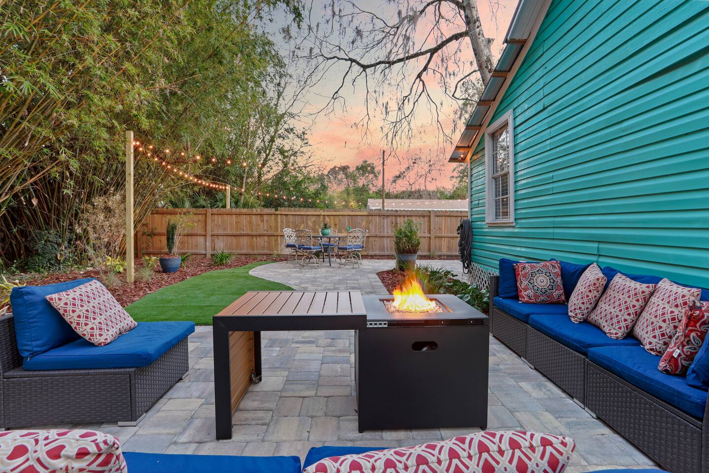 This Charming 126-year-old cottage is a historic home in High Springs. She is nestled into a quiet neighborhood with all the amenities you and your family will need for a fun and easy vacation in this quaint and fun little town. The main bedroom has a queen bed and opens into the dining area and the large bathroom. The second bedroom has a single and a double bed and opens to the living room, which has a sectional, two comfy chairs, and a 55"- SmartTV. The very private, fully fenced-in backyard features an outdoor living area with comfy furniture, a gas fireplace, a BBQ grill, and dining for 5. The beautifully landscaped yard also boasts a two-hole putting green and is the perfect place for your four-legged family member to have some unsupervised space to explore. You can stroll into town to visit the farmers market, antique shops, restaurants, and brewery. Then, you can relax in the beautiful backyard or screened-in porch and play a board game with your kids. Whatever your desire, The Historic Springs Cottage will give you what you need on your country town holiday.