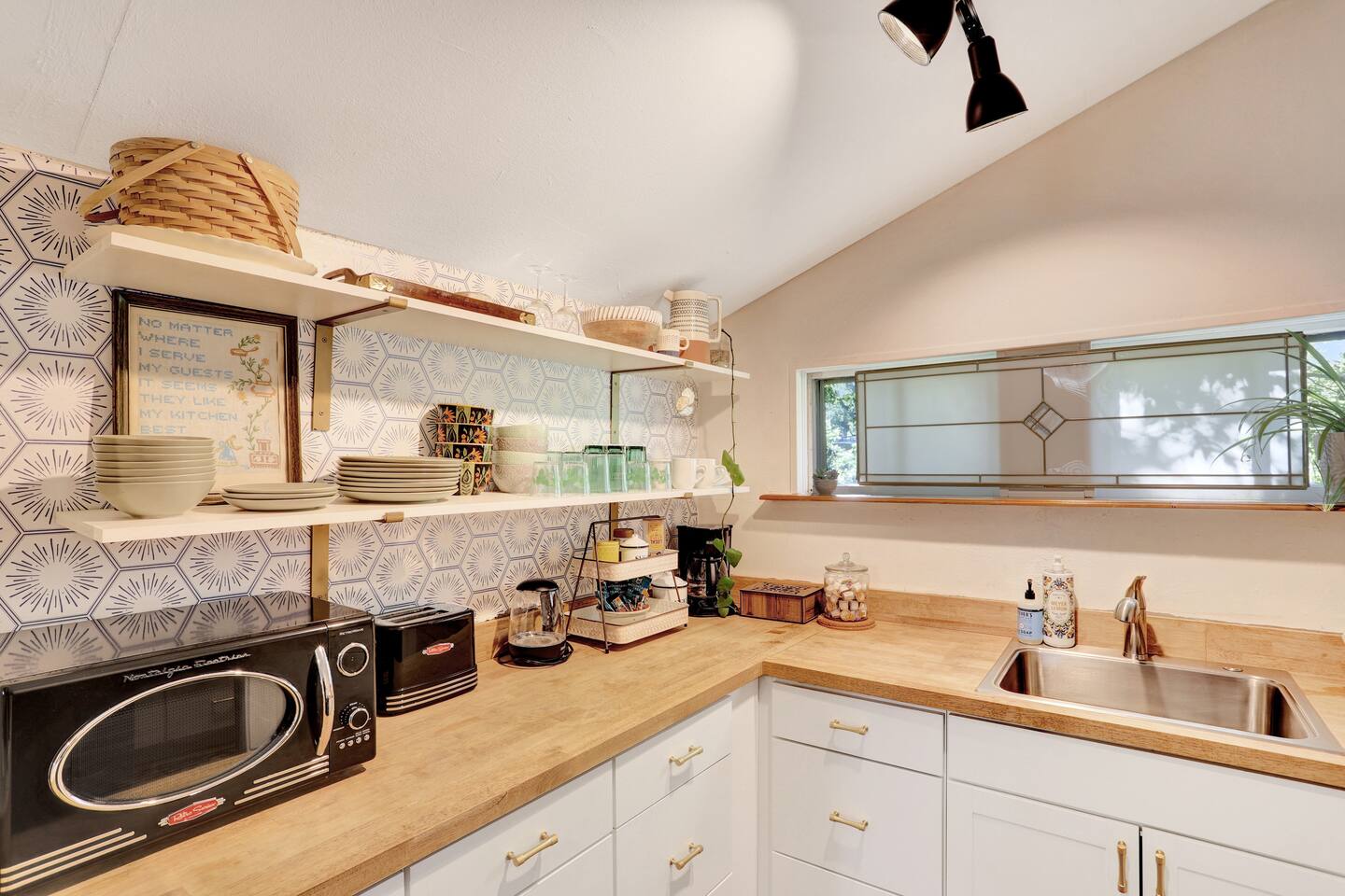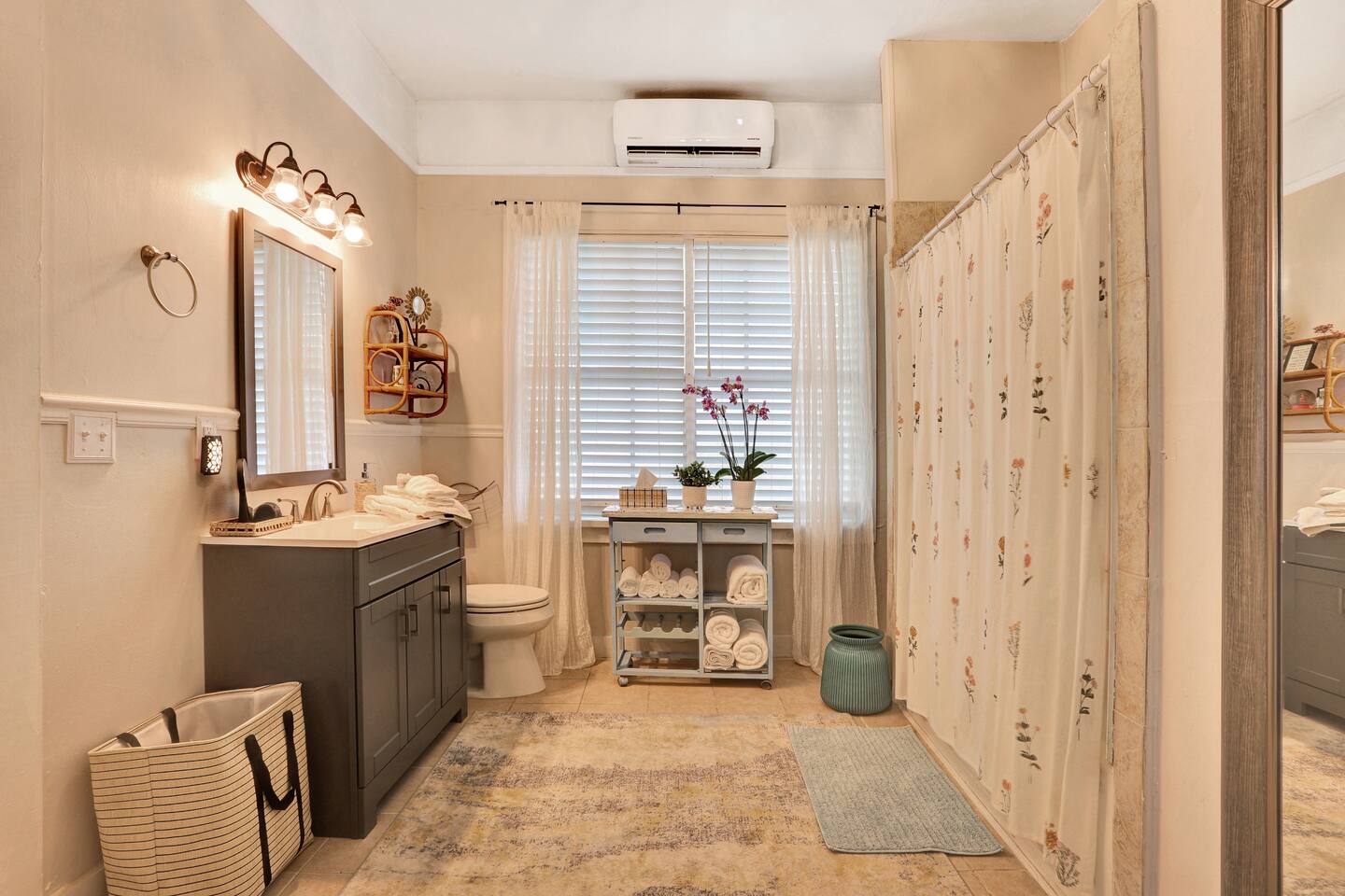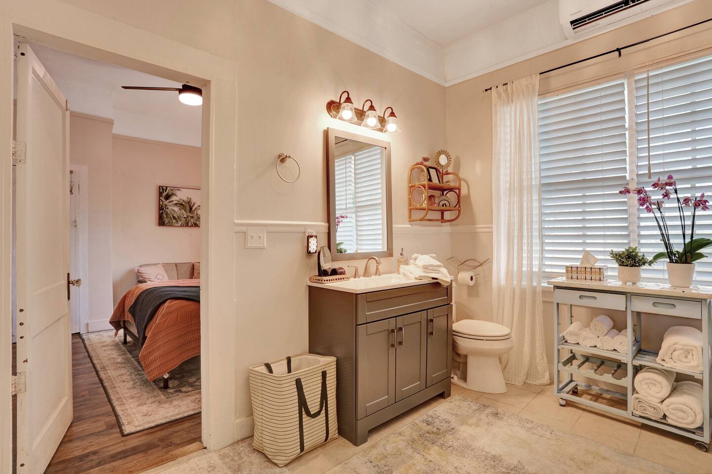 This Charming 126-year-old cottage is a historic home in High Springs. She is nestled into a quiet neighborhood with all the amenities you and your family will need for a fun and easy vacation in this quaint and fun little town. The main bedroom has a queen bed and opens into the dining area and the large bathroom. The second bedroom has a single and a double bed and opens to the living room, which has a sectional, two comfy chairs, and a 55"- SmartTV. The very private, fully fenced-in backyard features an outdoor living area with comfy furniture, a gas fireplace, a BBQ grill, and dining for 5. The beautifully landscaped yard also boasts a two-hole putting green and is the perfect place for your four-legged family member to have some unsupervised space to explore. You can stroll into town to visit the farmers market, antique shops, restaurants, and brewery. Then, you can relax in the beautiful backyard or screened-in porch and play a board game with your kids. Whatever your desire, The Historic Springs Cottage will give you what you need on your country town holiday.