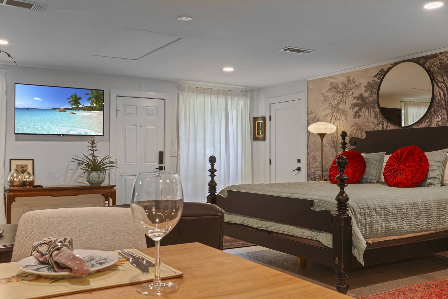 The Lilly, A Romantic Escape Like its namesake, Lilly Springs, this elegantly designed studio apartment is a tranquil getaway from the hubbub of everyday life. Five minutes walk from the charming antique stores and restaurants on Main Street, The Lilly offers a quiet retreat that evokes the charm of the local area. We use a sustainable design approach with locally sourced antiques and treasures to complete your High Springs experience.